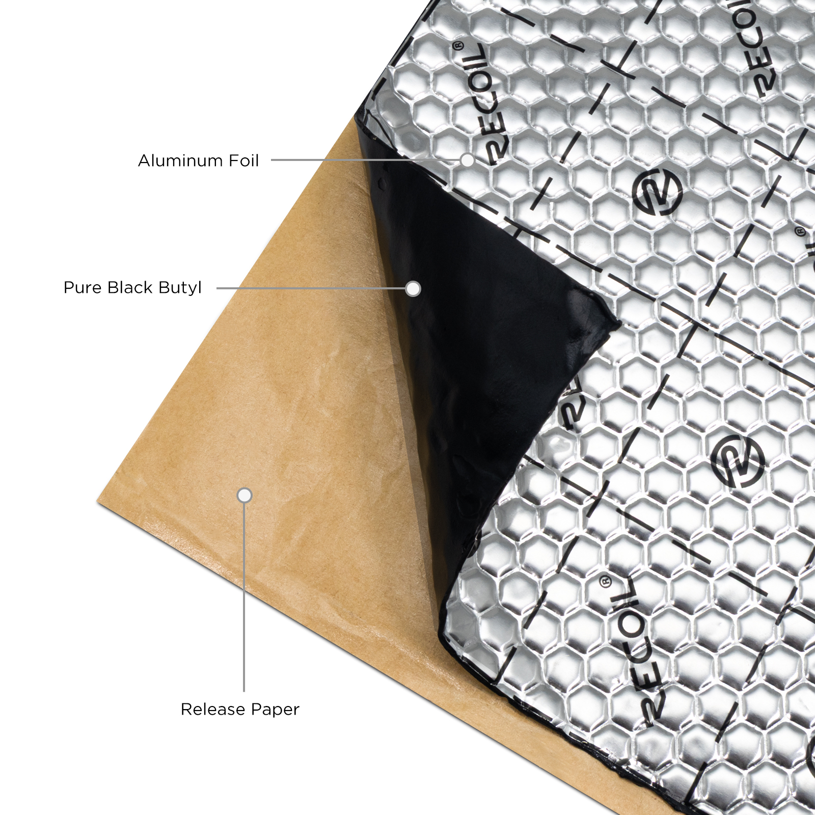Recoil damping mat consists of an advanced formulation of 99.9% pure white butyl, unlike other materials made of black recycled butyl.Recoil damping mat is easy to install with a “peel and place” application. Simply trim the pieces to fit, peel and place and hand roll to ensure good adhesion.