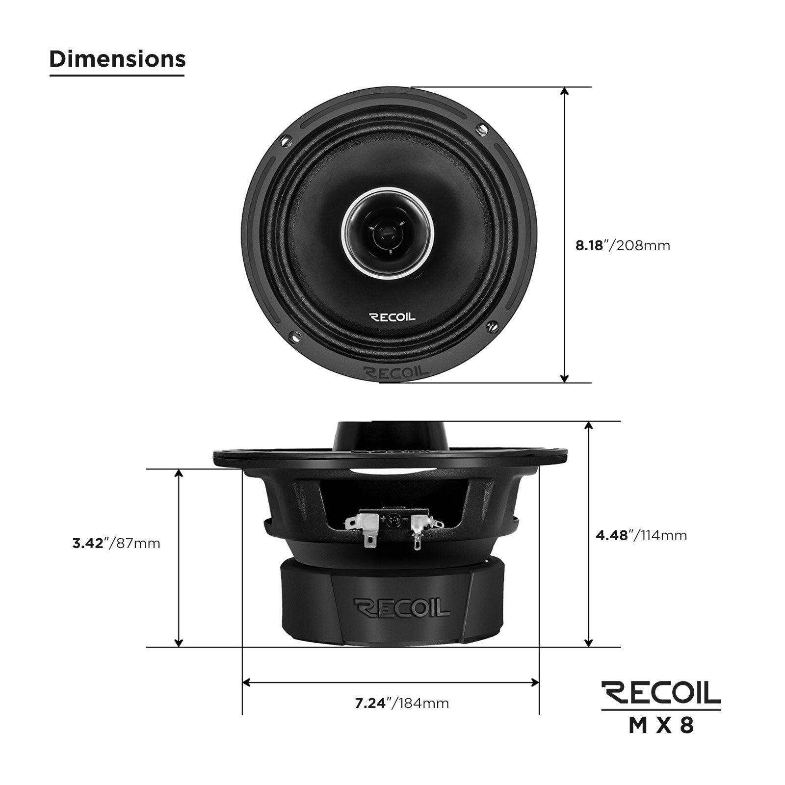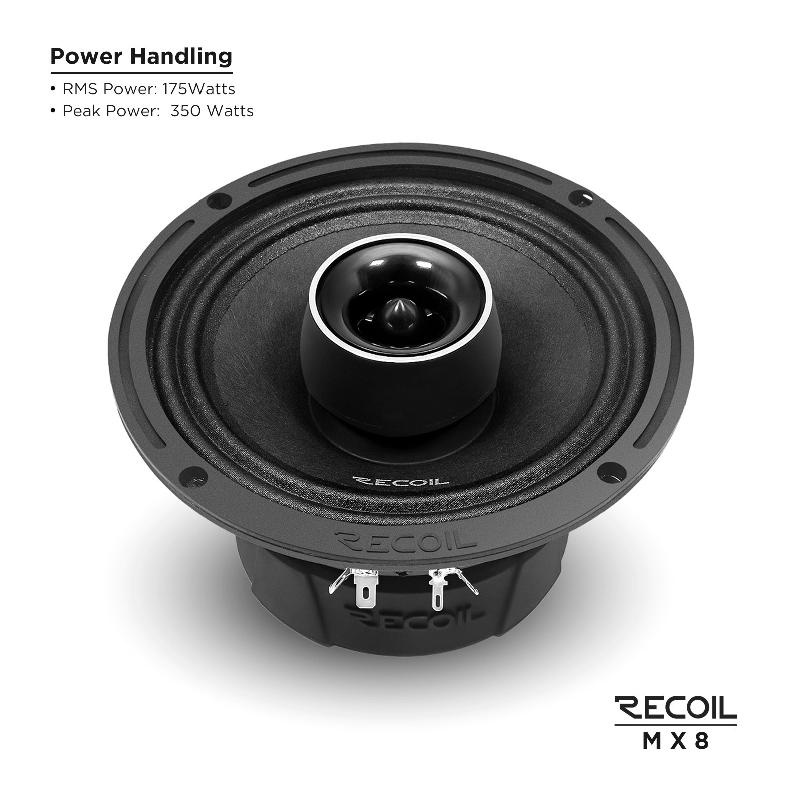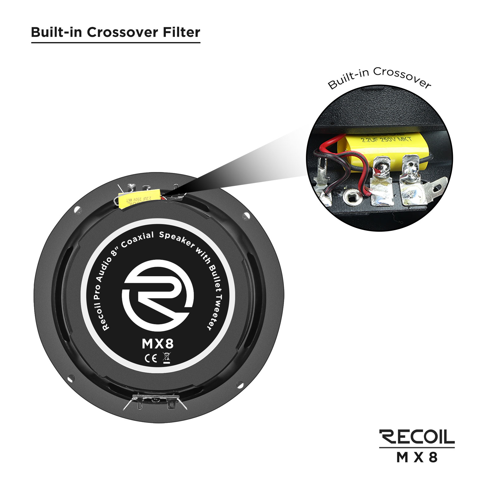 MX8 Pair 8″ Pro Coaxial Car Speaker with Bullet Tweeter – 700W Max, 350W RMS, 96.2dB Sensitivity, 4Ohm, High Output Loud Stereo Sound for Cars, Trucks, Boats