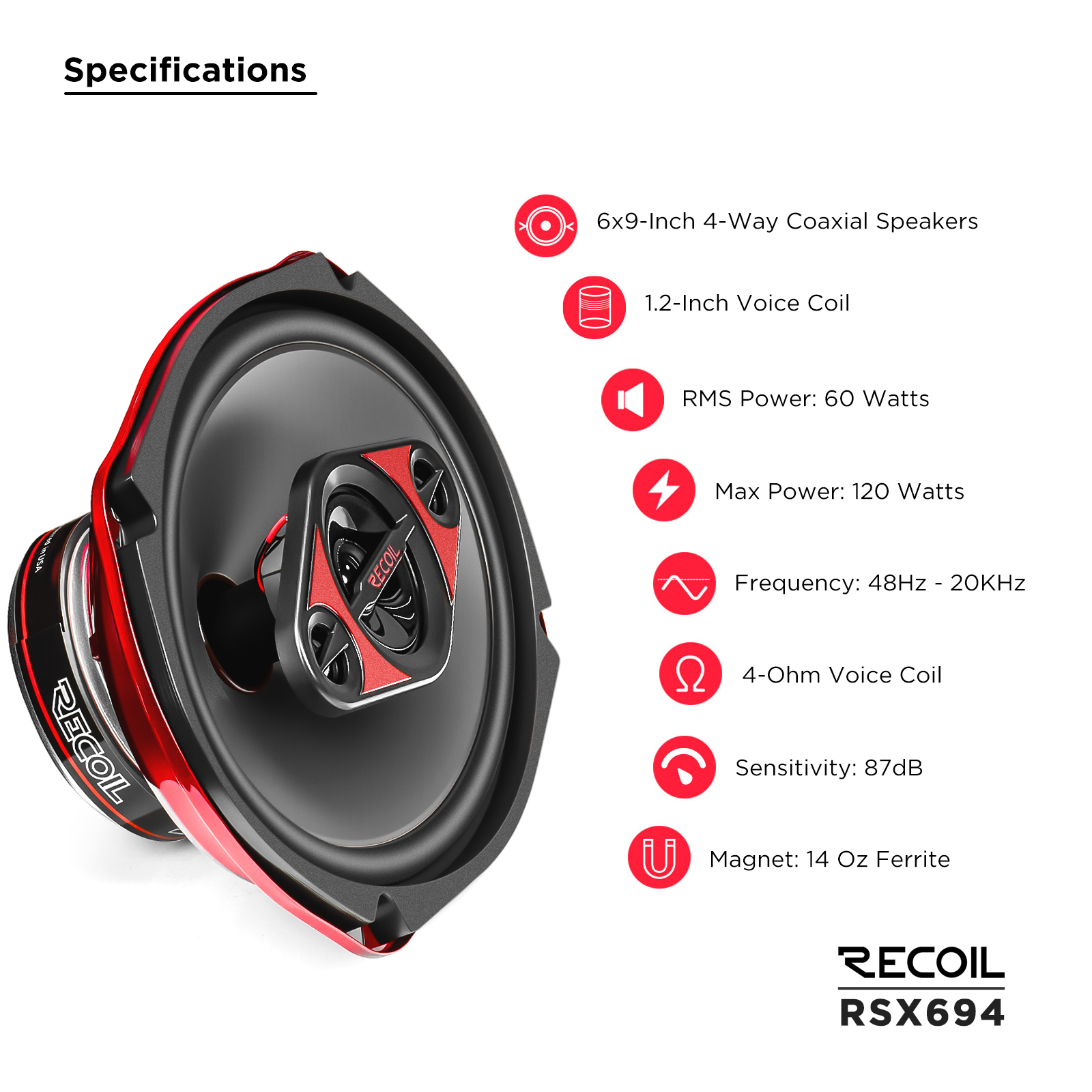 Be the first to review “RSX694 6×9 Inch 4-Way Coaxial Car Speakers – 240W Max Power (Pair), High-Performance & Balanced Sound with Mylar Midrange, Two Tweeters for Crisp Highs – Perfect for Car Audio Upgrades” Cancel reply