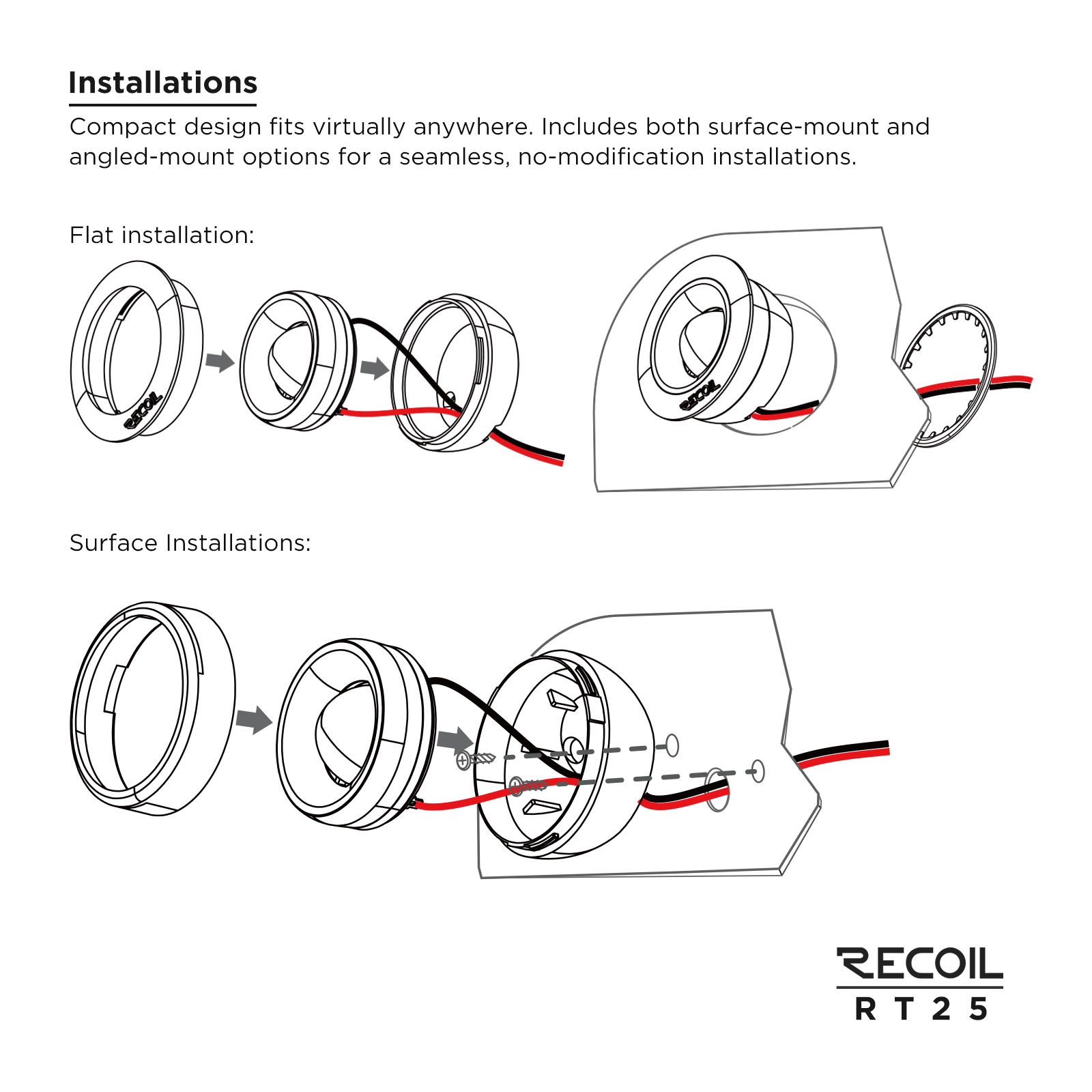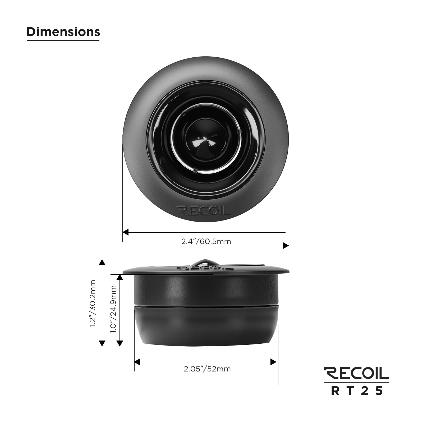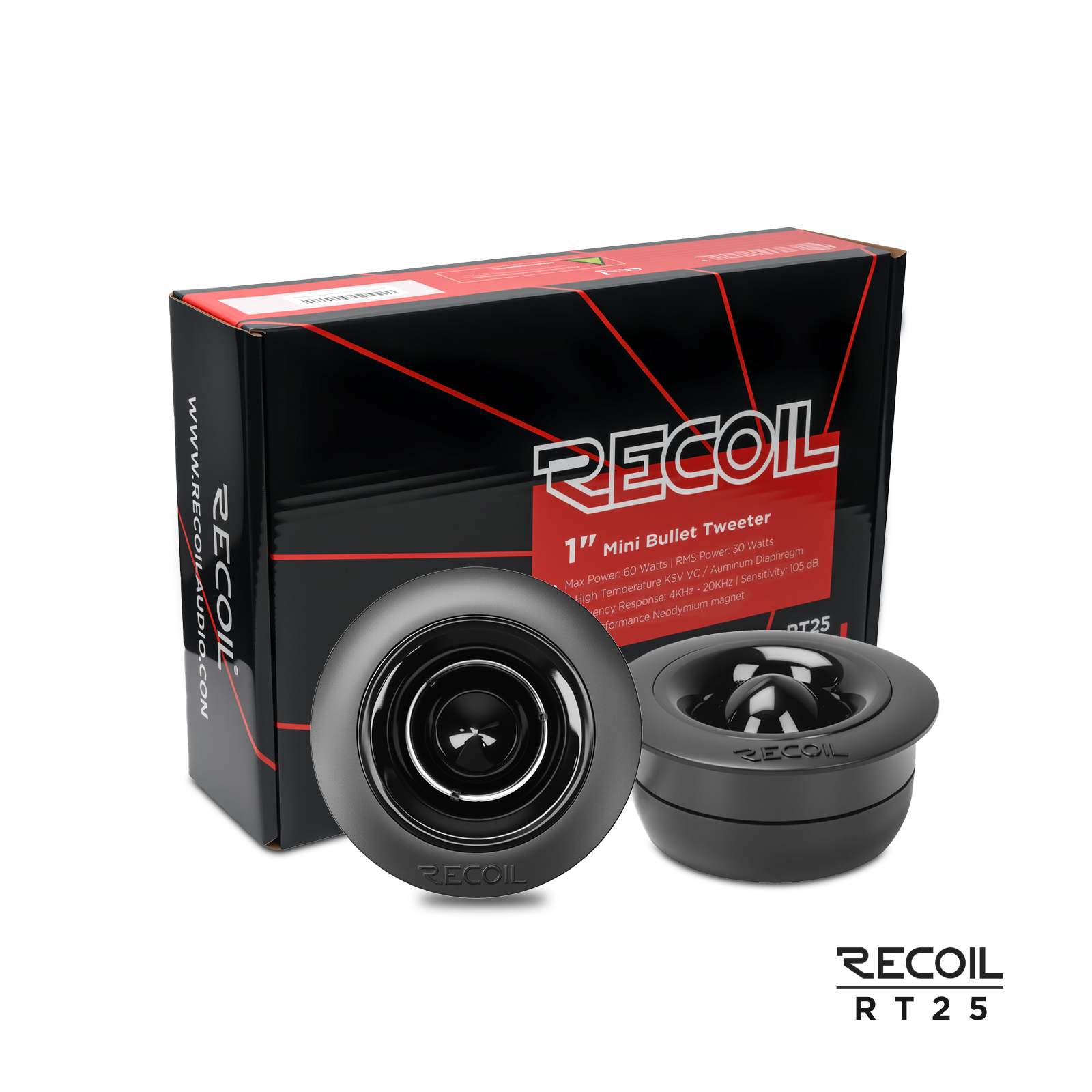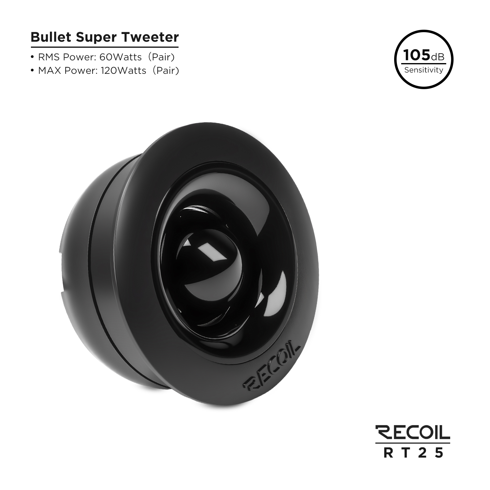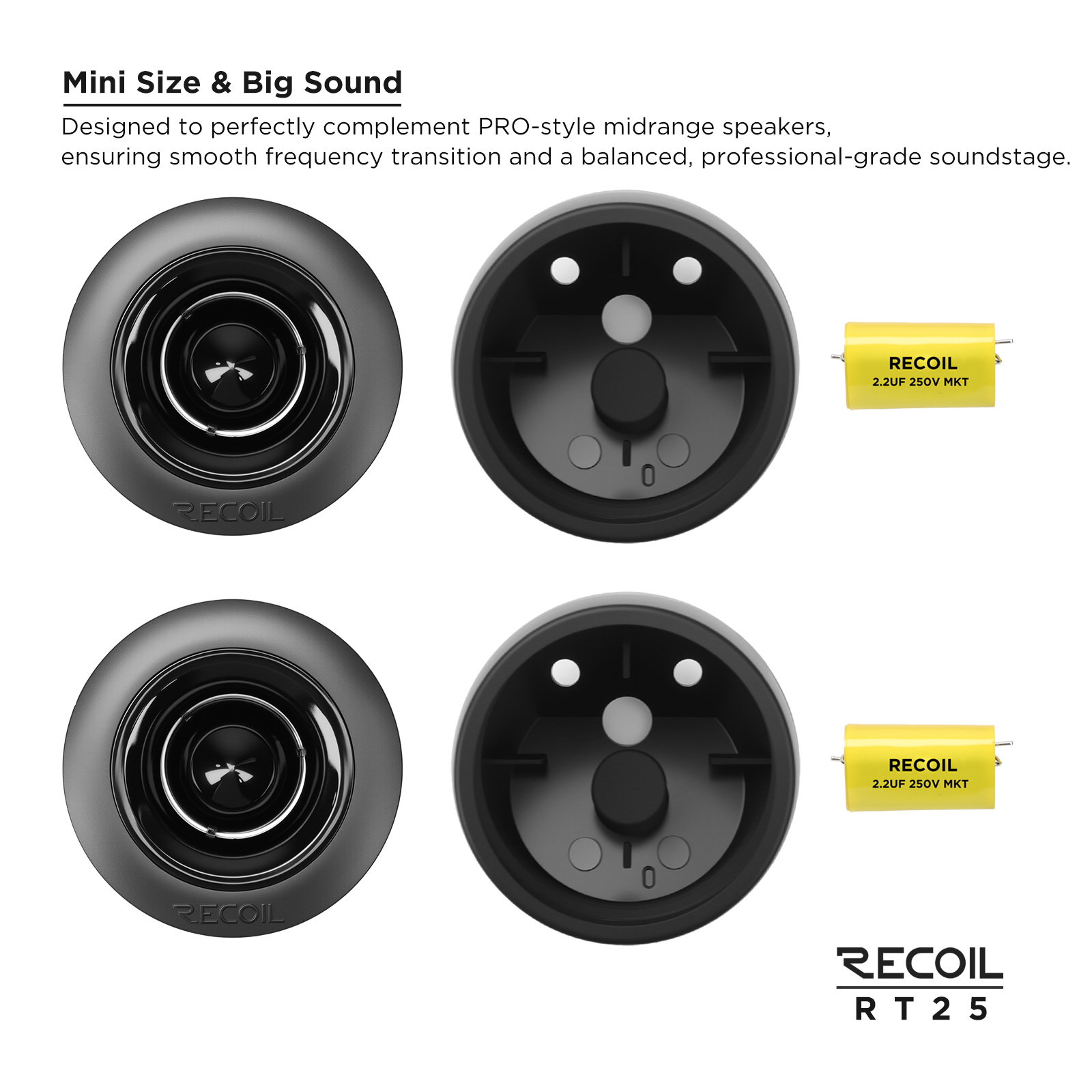 RT25 2.5″ Mini Bullet Tweeter, Max 120W (Pair) 105dB Sensitivity, 4 Ohm Aluminum Diaphragm, Surface/Angle Mount, Perfect Match for PRO Midrange Speakers, Car Audio Upgrade