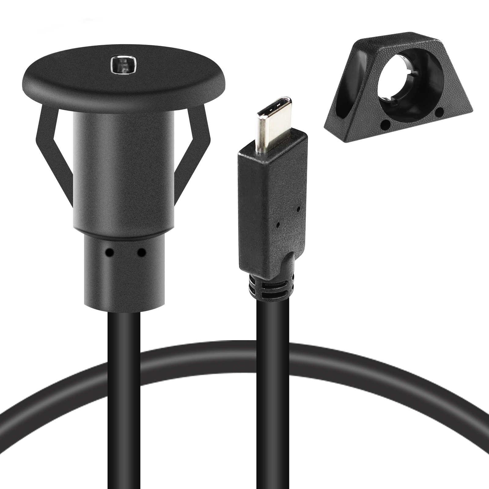 SUTC4.0-3 Compact USB Type C 4.0 Car Flush Mount Extension Cord, USB C 4.0 Male to Female Extension Cable for Car Truck Boat Motorcycle Dashboard, Length 3ft, Surface Mount Bracket Included