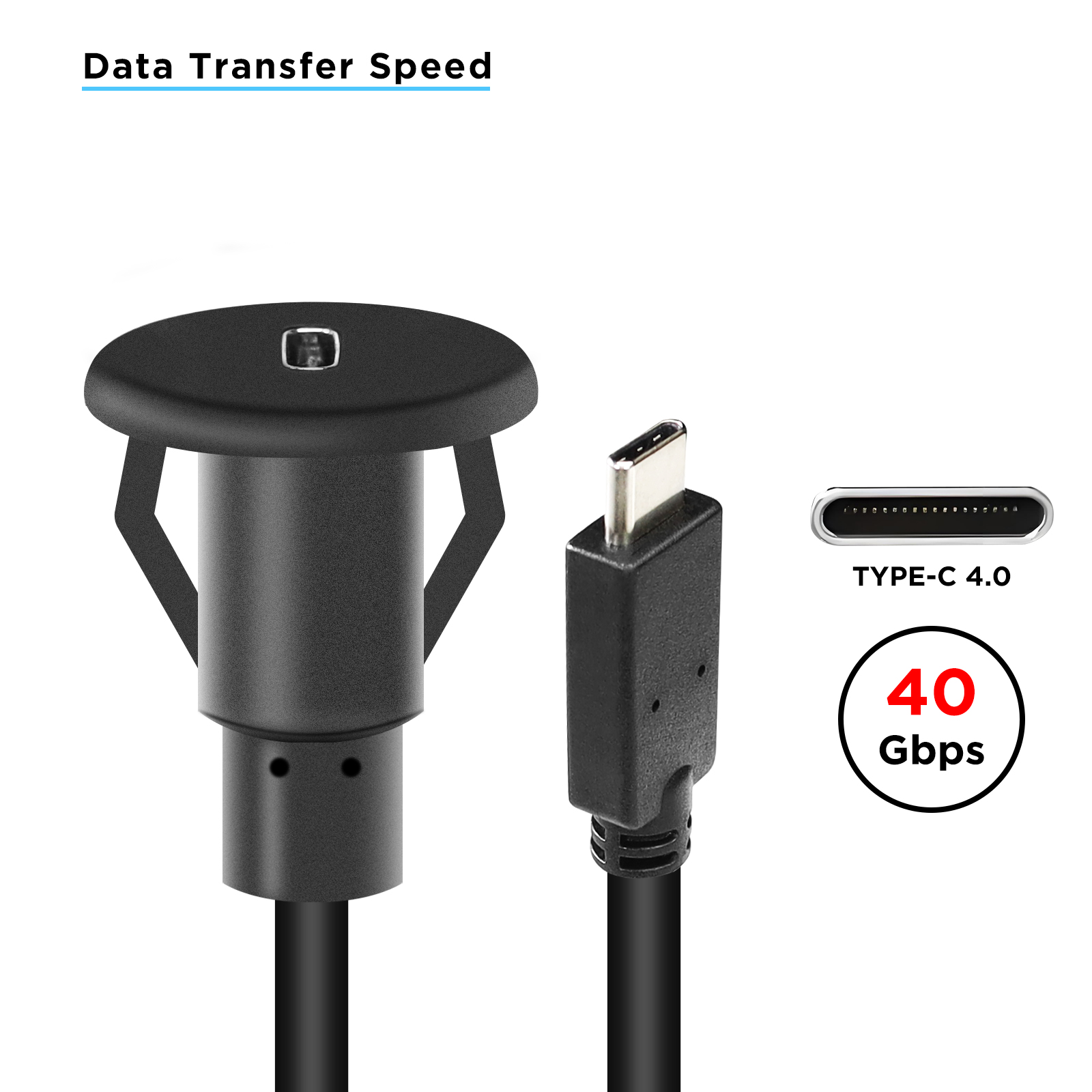 Data transfer speed is up to 40Gbps, compatible for USB C 4.0. (NOTE: Data Transfer up to 40Gbps requires the support of connected external devices)